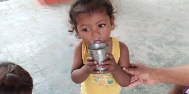 Every morning the PSOC distributes vitamin-enriched milk and biscuits to the many children on the city streets. For some, it is the only meal they will be able to eat all day.